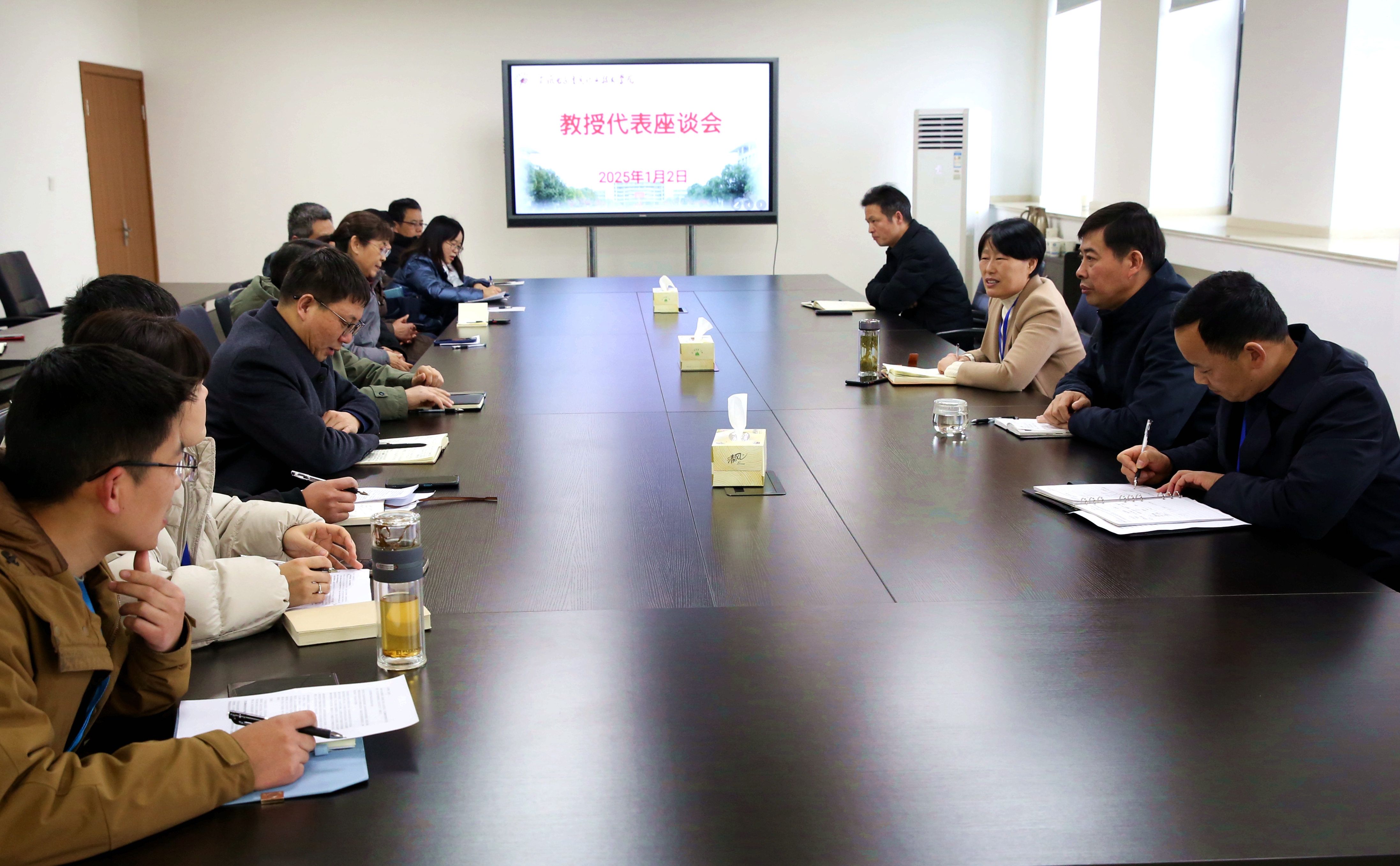 新年伊始,万象更新,为充分发挥教授在办学治校中的重要作用,广泛凝聚共识,汇聚发展合力,2025年1月2日,院长李素文主持召开学院教授代表座谈会,党委委员、纪委书记蔡学良出席会议,全体在院教授和组织人事处、教学科研处、发展规划处主要负责人参加活动。