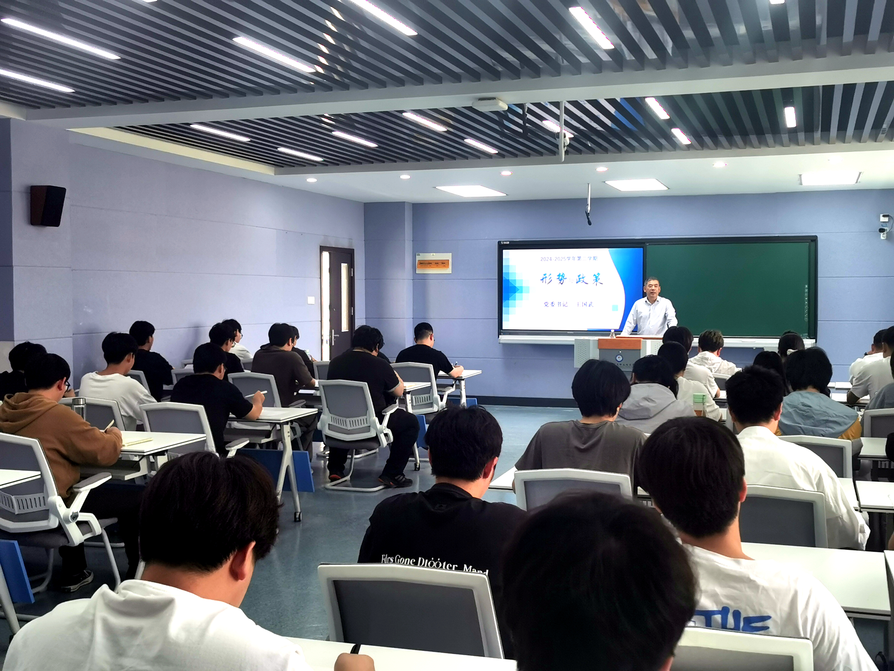 王国武以“加快推进教育强国建设”为题,在信息中心南302教室为信息工程学院计用237班学生讲授“形势与政策”课。王国武以2024年全国教育大会精神和《教育强国建设规划纲要(2024—2035年)》为切入点,全面介绍新时代教育发展的历史性成就和格局性变化,详细讲解加快推进教育强国建设的重大意义和战略举措,深入分析建设教育强国面临的形势与挑战。王国武还介绍了学院近年来发展所取得的丰硕成果,鼓励同学们要坚定理想信念、掌握过硬本领,在推进强国建设、民族复兴伟业中展现青春作为、彰显青春风采、贡献青春力量,努力成为教育强国建设的自觉践行者。