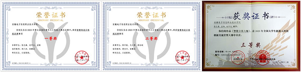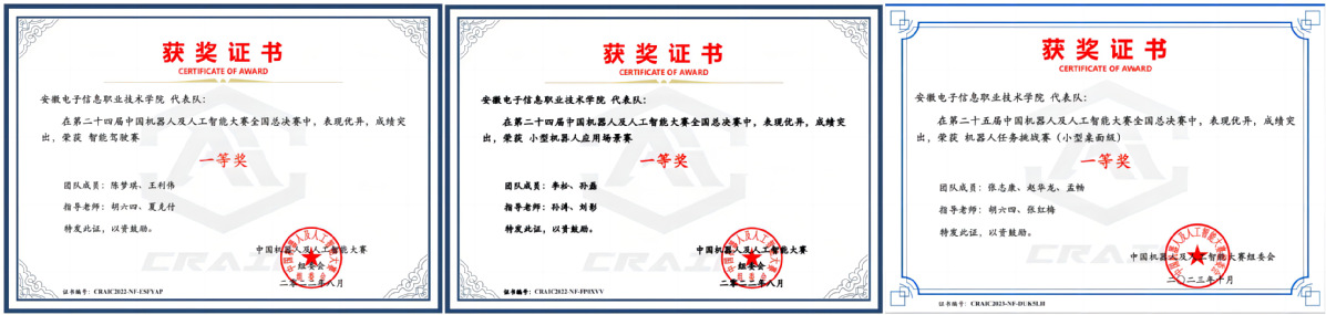 2023年第二十五届中国机器人及人工智能大赛—机器人任务挑战赛全国一等奖1项,二、三等奖各1项