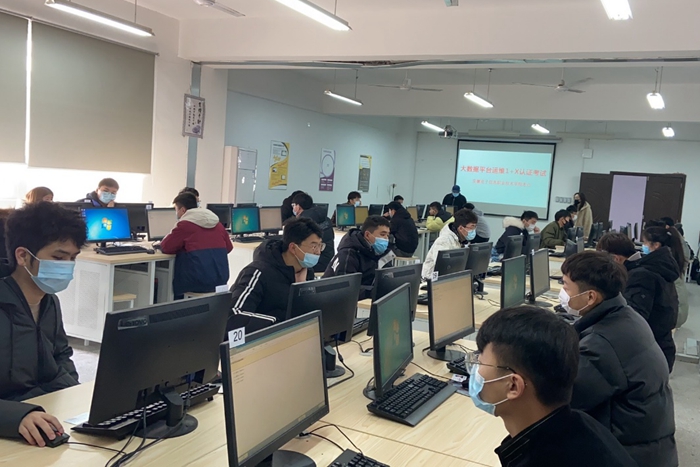 此次参加认证考试同学全部为正在顶岗实习的毕业班学生。为方便学生学习,软件学院信息管理系针对认证考试建设网络教育资源平台,多名教师利用休息时间组织学生线上集体培训、辅导、答疑,将培训内容录制视频放到资源平台上方便学生反复学习。针对实操性内容,开放学院大数据实训平台,辅导学生进行实训练习,提升学生大数据平台运维职业技能。在疫情防控方面,严格按照学院防控办要求,认真核实学生所在地和近期行动轨迹,考试全程佩戴口罩,确保返校参加考试学生的健康、安全,将常态化疫情防控工作落到实处。