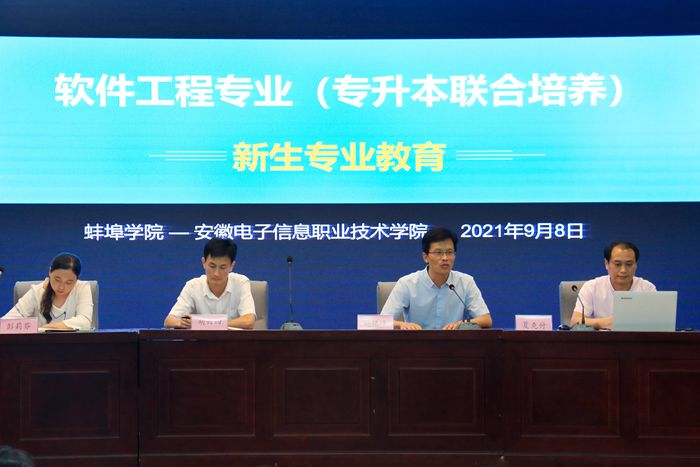 本网讯 9月8日下午,软件工程学院2021级软件工程专业新生专业教育在信息中心一楼学术报告厅举行,蚌埠学院计算机与信息工程学院副院长姚保峰、软件工程学院院长夏克付出席会议,软件教研室主任胡六四、骨干教师彭莉芬及软件工程专业2021级新生与辅导员参加会议。