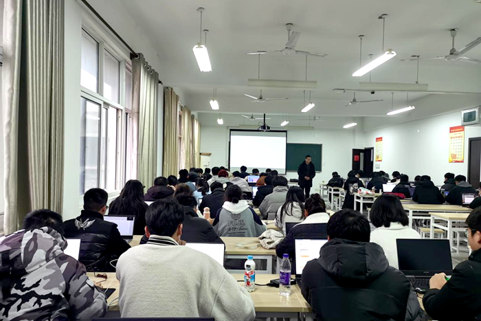 本网讯 近日,软件工程学院2022级软件工程(专升本)专业学生在中412多功能教室开展了为期一周的企业项目实训,在科大讯飞宋小浩老师的指导下,同学们完成了基于Java Swing图形界面的超市进销存管理系统的设计与开发,实现了用户登录、店铺收款、雇员管理、商品管理、销售统计等功能模块。