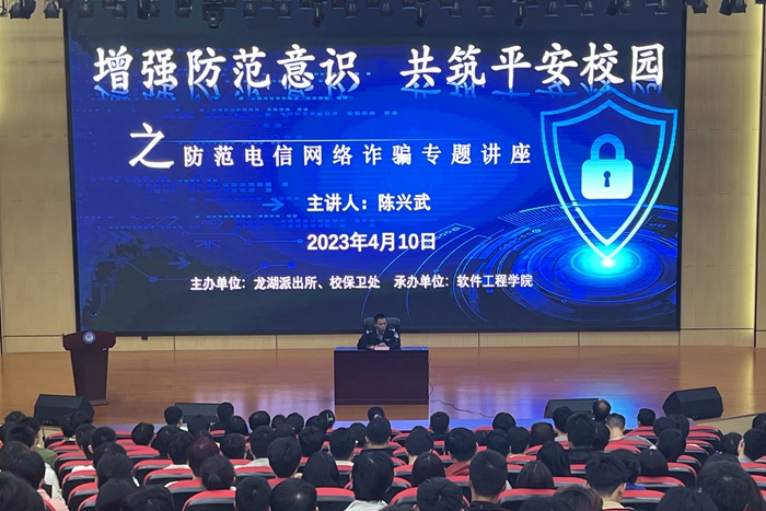 软件工程学院与会师生对陈兴武所长的精彩宣讲致以热烈的掌声!软件工程学院对与会师生提出要求,希望同学们在今后的生活中,进一步提高识别网络诈骗的能力,防微杜渐、警钟长鸣,用实际行动维护网络安全,营造共同打击防范电信网络诈骗的良好氛围。要求全体在校班级展开一次大讨论,让防骗意识在同学们心中生根、发芽、开花、结果。(软件工程学院 严玉涵 审核 周伟利)