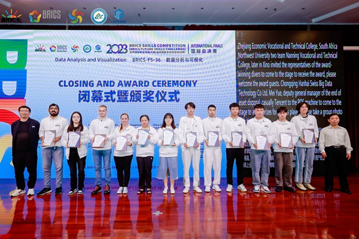 本网讯 金秋时节,硕果飘香。11月6日,2023金砖国家职业技能大赛数据分析与可视化赛项国际总决赛在珠海城市职业技术学院落下帷幕。来自中国、南非、俄罗斯、印度、马来西亚、中国澳门等13个国家和地区的138支队伍经过三天线上+线下的激烈比拼,我院大数据竞赛团队的陈双喜同学以国内总分第七斩获二等奖,指导老师陈俊生获优秀指导专家称号。