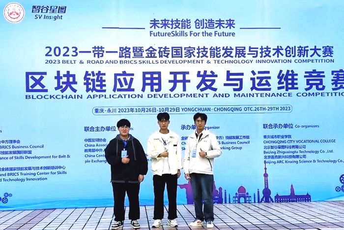 本网讯 近日,2023一带一路暨金砖国家技能发展与技术创新大赛区块链应用开发与运维赛项全国总决赛在重庆城市职业学院落下帷幕,来自国内外共计230多名选手参与,经过激烈角逐,我院学子孟畅、张悦组成的代表队荣获全国三等奖。