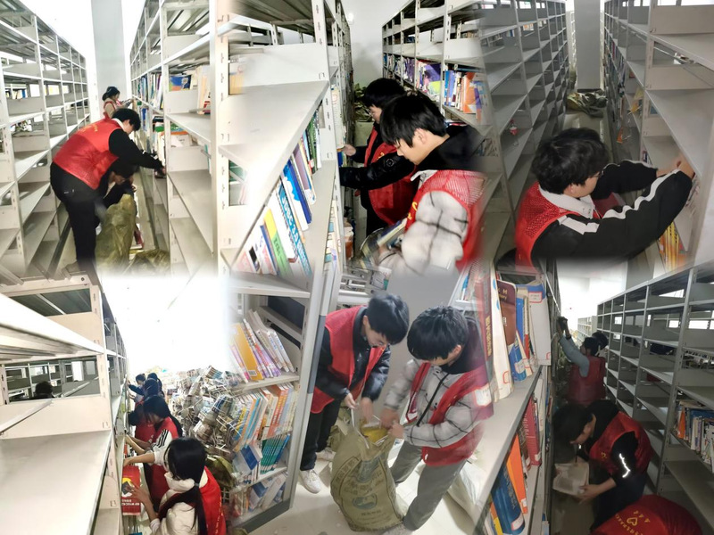 志愿者们在图书馆前集合,穿上红色志愿服在活动现场,志愿者们既定分工,有序地开展了各项工作。有的志愿者负责整理书架上的书籍,他们耐心地将图书归类、摆放,使得书架上的图书井然有序还有的志愿者负责向在图书馆学习和借书的同学宣传爱护图书、保持图书馆卫生的重要性