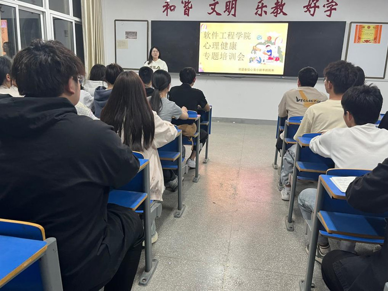 心理健康专题培训会由学院辅导员、软件工程学院心理健康教育专干曹雪莹主讲。会上,通过案例分析,曹雪莹向与会人员介绍了心理委员和宿舍心理信息员的职责,以及朋辈互助在心理健康工作中的关键作用,传授给了同学们如何科学识别、预防和解决不同类型的心理危机,并提醒同学们在与心理异常同学沟通过程中需要注意的事项。