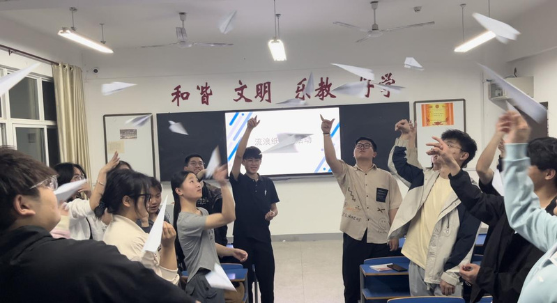 “房树人测验”帮助同学们更好地探寻最真实的自我,了解自己的潜意识;“流浪纸飞机”则让同学们以匿名的形式分享自己的故事,同时带着一颗共情、温暖的心聆听他人的故事并写下留言。随着活动的深入进行,其间夹杂着一些小游戏,同学们逐渐放松下来,现场一片欢声笑语,增进了同学间的情感交流。