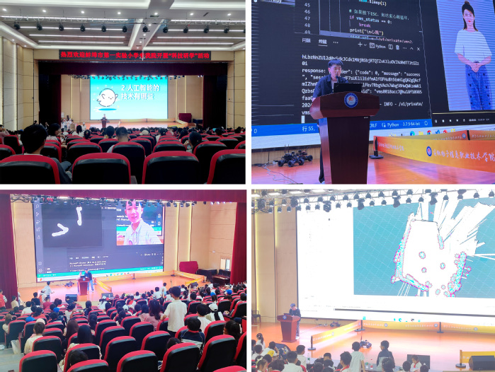 接下来,李曼玉老师精心准备的人工智能科普讲座给同学们带来了一场思维的盛宴。她以通俗易懂的语言带领孩子们认识人工智能技术,并展示了其在图像识别、自然语言理解、视频生成等领域的应用。徐浩琦老师的虚拟数字人展示不仅令孩子们啧啧称奇,更让他们与虚拟主播进行了一次亲密的互动。邵黑龙老师带来的“隔空写字”项目展示了先进的手势识别技术,而赵鹏程老师的ROS无人驾驶智能车演示则让孩子们真切感受到了人工智能技术的实际应用。
