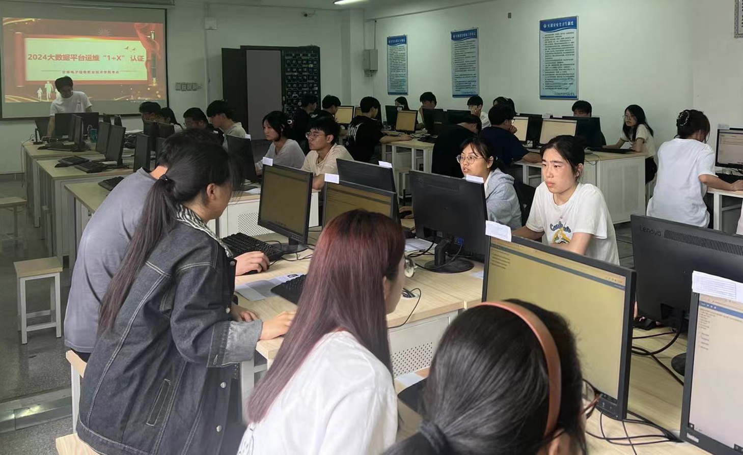 本网讯         6月5日,2024年度“1+X”大数据平台运维职业技能等级认证考试在学院大数据实训中心成功举行,来自软件工程学院22级大数据技术专业的80名学生参加了本次考试。