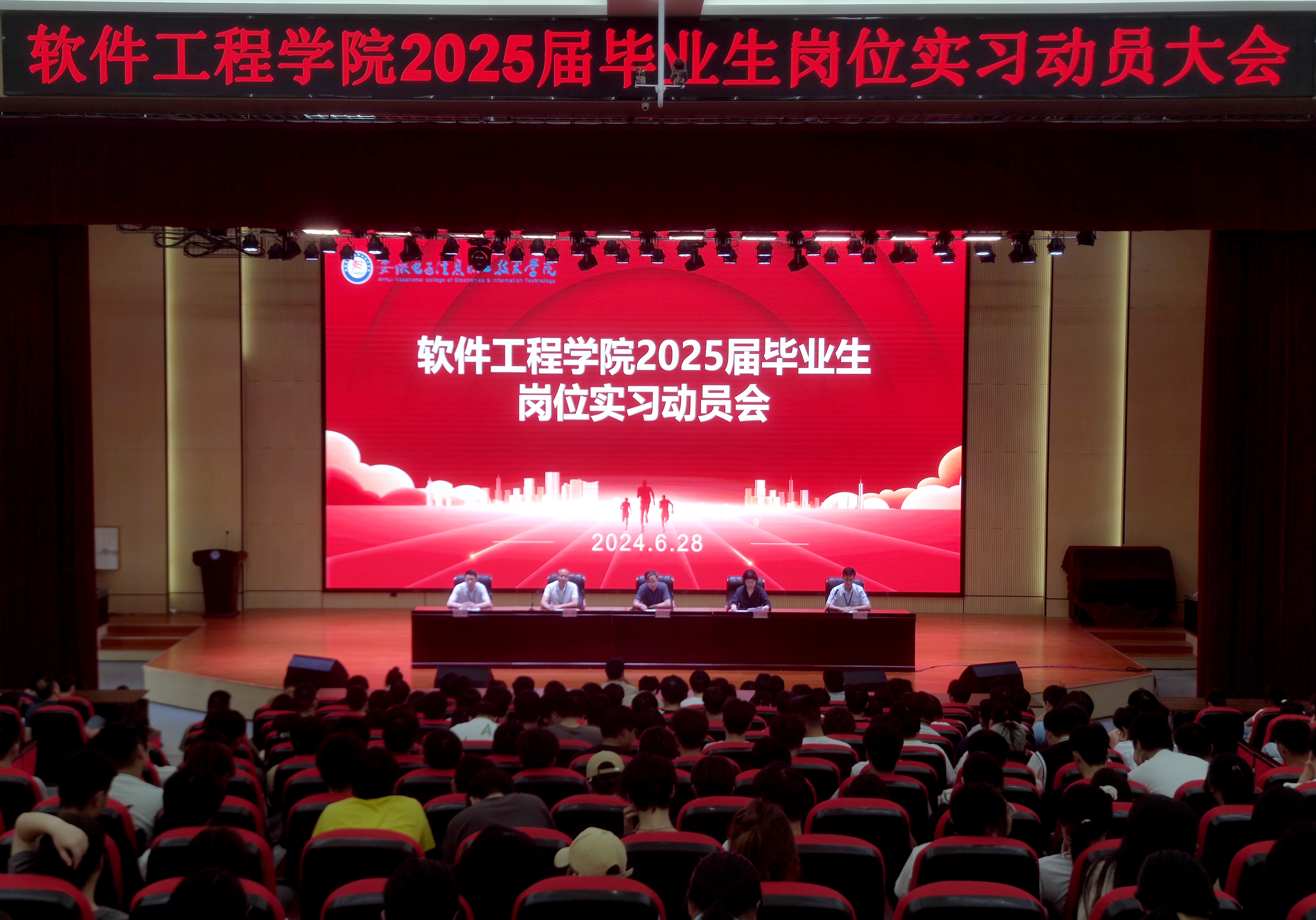 本网讯 为保障毕业生岗位实习工作顺利开展,6月28日下午,软件工程学院在实验楼报告厅召开2025届毕业生岗位实习动员会。软件工程学院党总支书记周伟利,副书记严玉涵及各教研室主任出席会议,岗位实习指导教师,毕业班辅导员和2025届毕业生参加会议。会议由软件技术教研室主任胡六四主持。