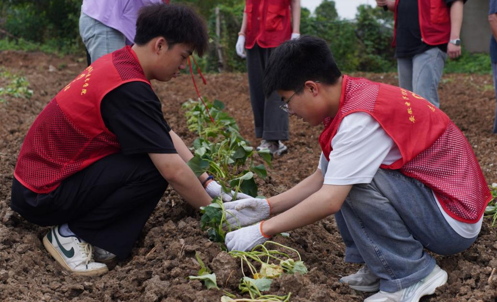 青春下乡助农忙  汗水浇田爱心长。实践团深入蚌埠市燕山乡定庵村。在这里,开始了他们的“走基层”农活劳动实践之旅,包括水稻除草和插红薯秧两项工作。他们以积极的态度和实际行动助力农忙。凭借细心和耐心,仔细辨别水稻与杂草,通过团队协作,逐步完成了从杂草丛生到整洁有序的水稻田转变;并虚心向当地农民学习技巧,专注地将嫩绿的红薯秧插入泥土。同时,他们还充分利用劳作间隙与农民交流,深入了解乡村生活和农业知识。