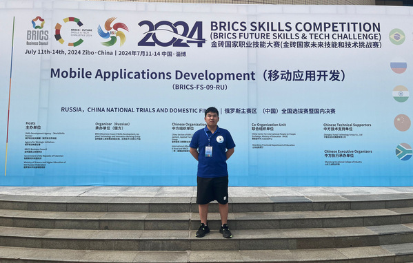 本网讯 近日,2024金砖国家职业技能大赛“移动应用开发”赛项俄罗斯主赛区(中国)全国选拔赛暨国内决赛在山东工业职业学院圆满落幕。经过激烈角逐,软件工程学院科大讯飞班刘明豪同学荣获全国三等奖。