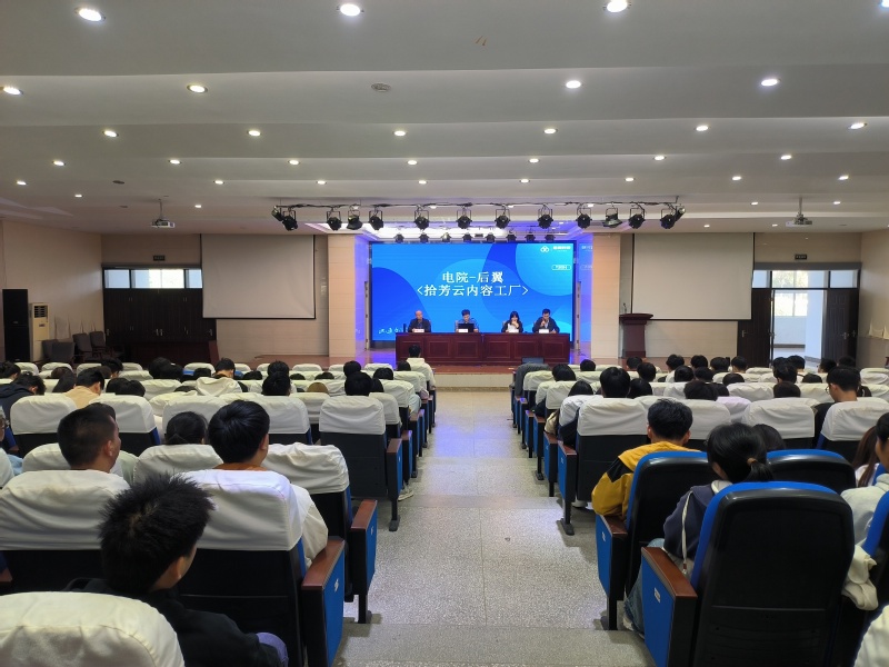 本网讯    10月23日下午,软件工程学院在信息中心学术报告厅举办了“电院-后翼内容工厂”专题宣讲会。安徽后翼供应链科技有限公司(以下简称:后翼科技)总经理宛翔宇,视觉设计师葛蕾,数字艺术教研室主任单盛以及2023级软件技术、数字媒体专业的200余名同学参加活动,活动由人工智能现代产业学院副院长胡六四主持。