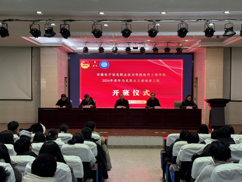 本网讯 12月27日,软件工程学院在学术报告厅举办2024年“青年马克思主义者培养工程”培训班开班仪式,党总支书记周伟利、学生支部书记唐书圣、教师1支部书记王林、教师2支部书记周杰及全体培训班成员参加,会议由学院分团委操巩利主持。