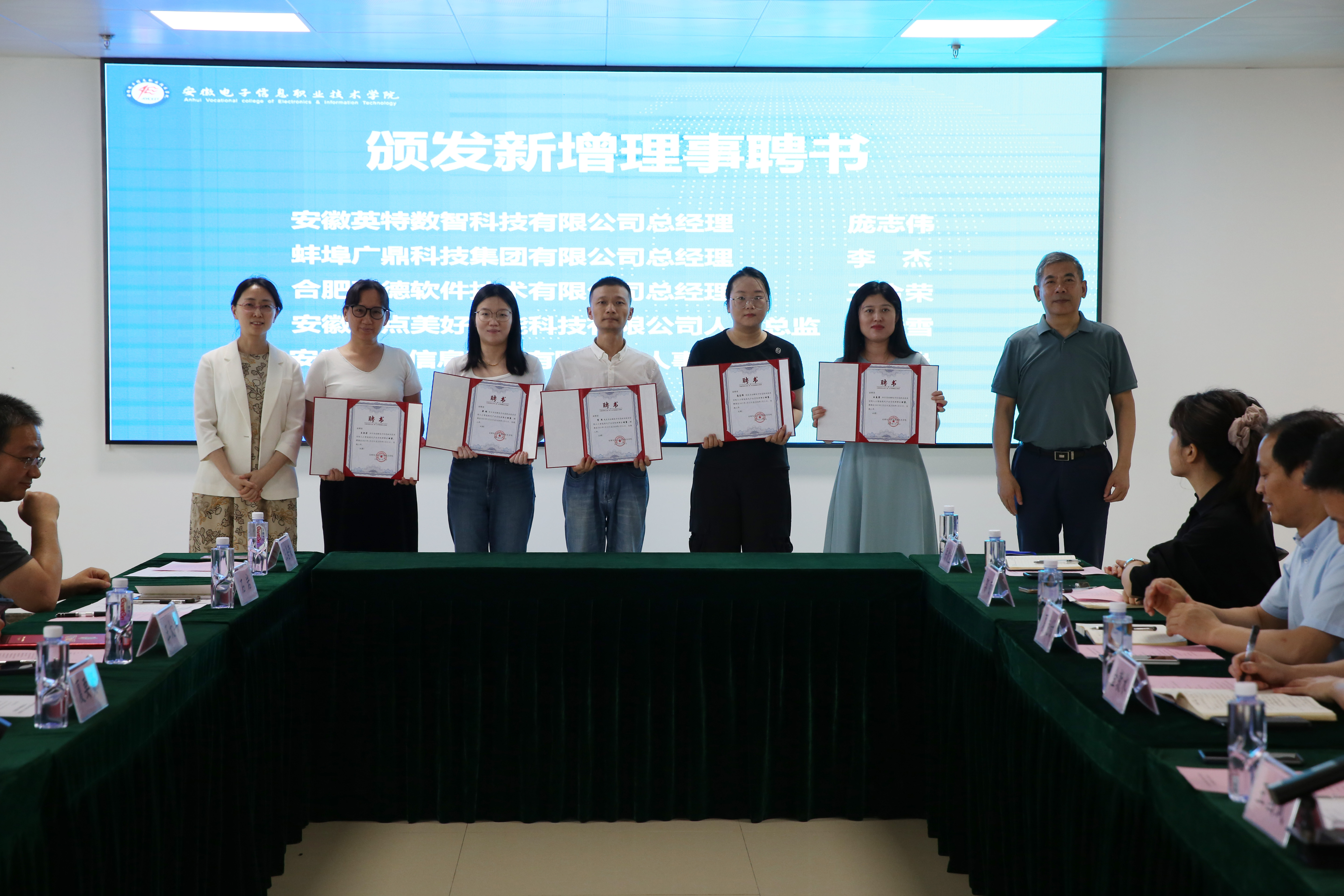 会上,王国武为安徽奇智科技有限公司董事长王大年、安徽莲雾物联网科技有限公司总经理王传福颁发了学院省级产业教授聘书,与理事长马季共同为产业学院新增理事单位颁发了理事聘书。