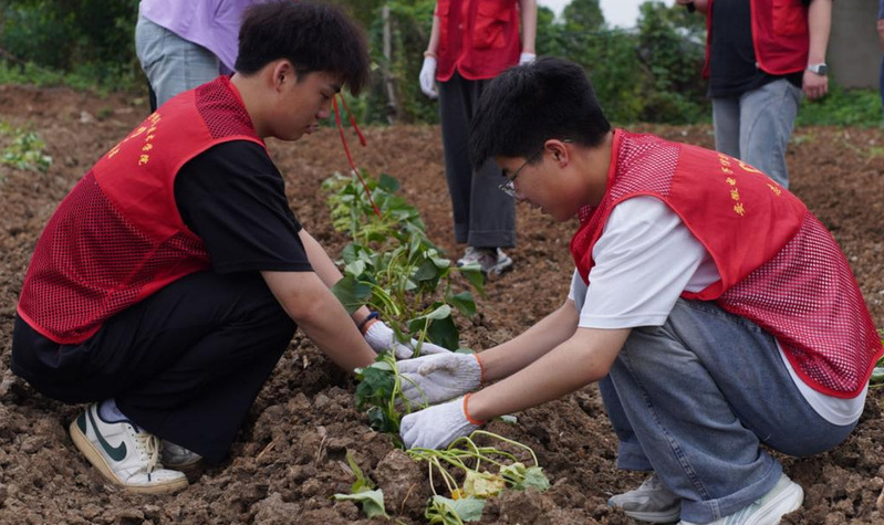青春下乡助农忙 汗水浇田爱心长。实践团深入蚌埠市燕山乡定庵村。在这里,开始了他们的“走基层”农活劳动实践之旅,包括水稻除草和插红薯秧两项工作。他们以积极的态度和实际行动助力农忙。凭借细心和耐心,仔细辨别水稻与杂草,通过团队协作,逐步完成了从杂草丛生到整洁有序的水稻田转变;并虚心向当地农民学习技巧,专注地将嫩绿的红薯秧插入泥土。同时,他们还充分利用劳作间隙与农民交流,深入了解乡村生活和农业知识。