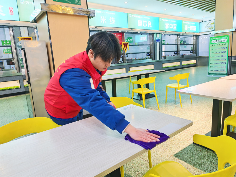 当天下午,20名志愿者参加了“你我携手美化校园”学雷锋志愿服务活动。志愿者们来到食堂,帮助食堂工作人员打扫卫生、清洁桌面、摆放桌椅。他们不怕脏、不怕累,用实际行动为校园环境的整洁贡献了一份力量。经过大家的共同努力,食堂的环境变得更加干净整洁,为师生们营造了一个舒适、卫生的就餐环境。志愿者们表示,通过这次活动,他们深刻体会到了劳动的意义和价值,也更加明白了作为一名学生,要从身边的小事做起,为校园的建设贡献自己的力量。