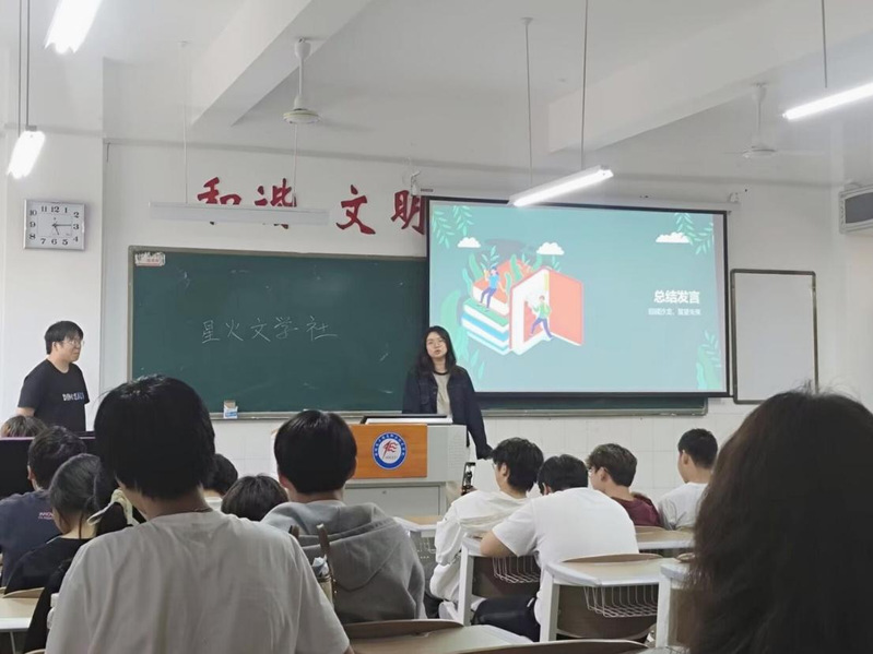 本网讯 为了响应全民阅读号召、深化校园文化交流,助力青年学子在文学中探寻人生真谛,4月23日世界读书日,机电工程学院星火文学社在1204教室举办“文学与人生”主题沙龙,七十余名师生共赴这场思想盛宴。