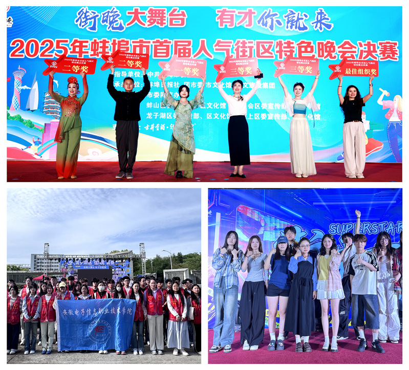 本网讯  近日,由中共蚌埠市委宣传部统筹,蚌埠日报社、团市委、市文旅投资集团、市文化馆承办的“‘街晚’大舞台,有才你就来”2025年蚌埠市首届人气街区特色晚会活动决赛在淮河文化广场举办。经过初赛、复赛的激烈角逐,我院软件工程学院网络235班学子李睿鹏冲破重围,登上决赛舞台,荣获二等奖。