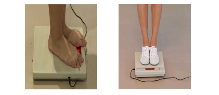 2.2.3 受试者穿鞋站立于体重计上。