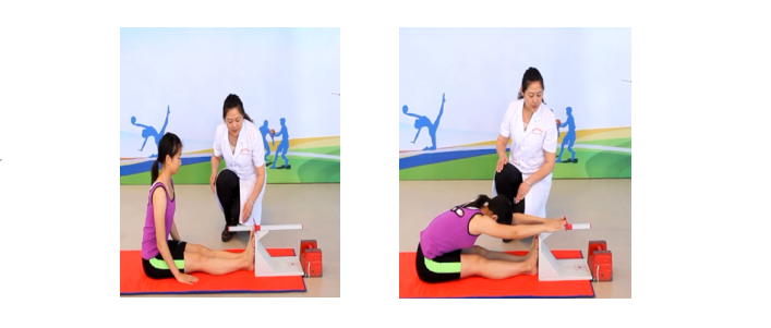 9.2.2 身体前屈时,膝关节弯曲或足跟与挡板分离。