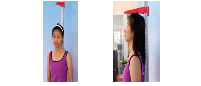 1.2.4 受试者穿鞋站立于身高计上。