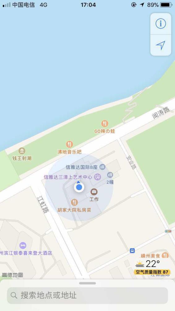 3.1定位点旁边蓝色半透明圆圈越大, 3.2 地图放大后,看看自己的定位是否是正确的位置。