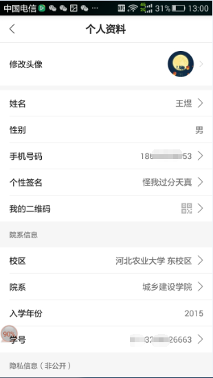 修改个人信息:APP必赢766net手机版-我的-点击头像进行个人信息页面