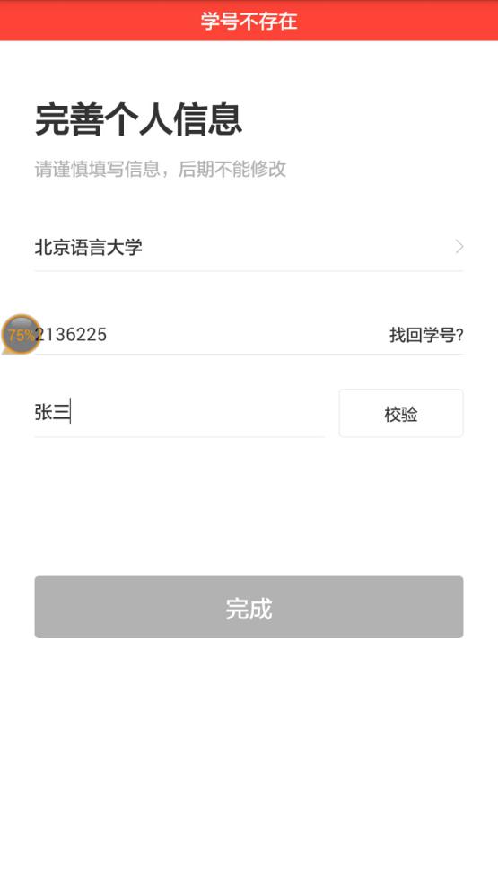 学号已被注册:点击找回学号,上传学生证明。1-7个工作日内审批