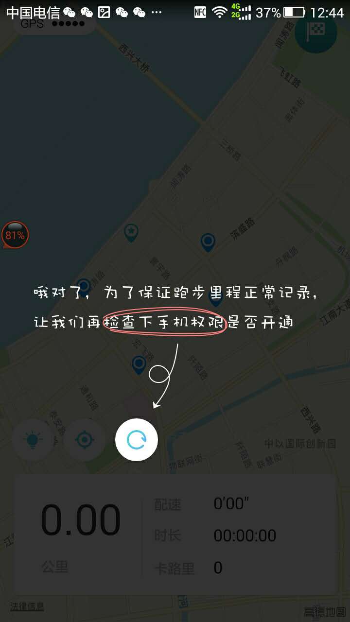 设置后依然不能定位:(跑步页面会有检测功能,根据检测功能进行设置)