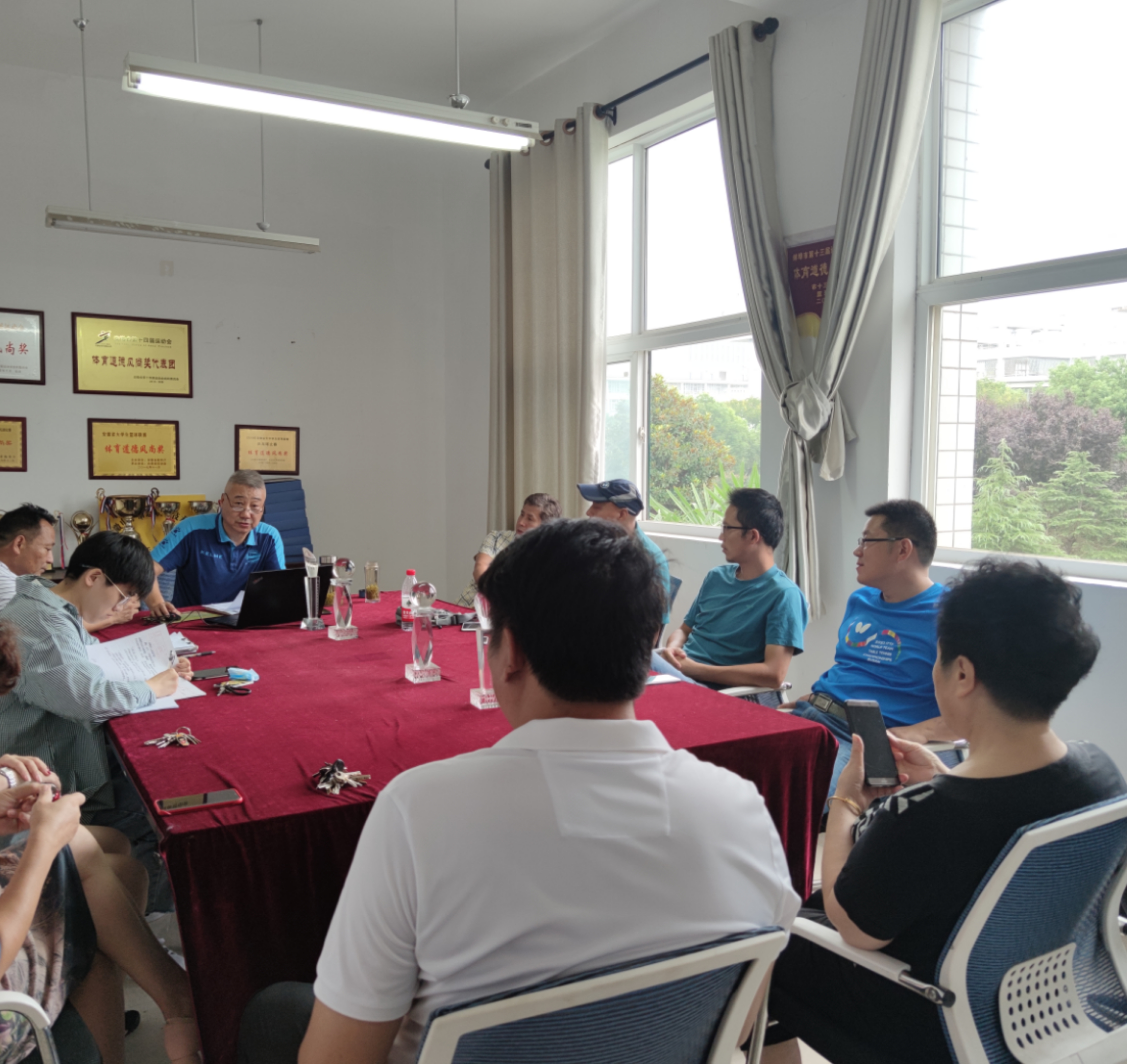8月29日上午9时,体育俱乐部管理中心在体育馆203会议室组织召开新学期体育工作会议,会议由体育俱乐部管理中心主任章明辉主持,全体体育教师参与会议。