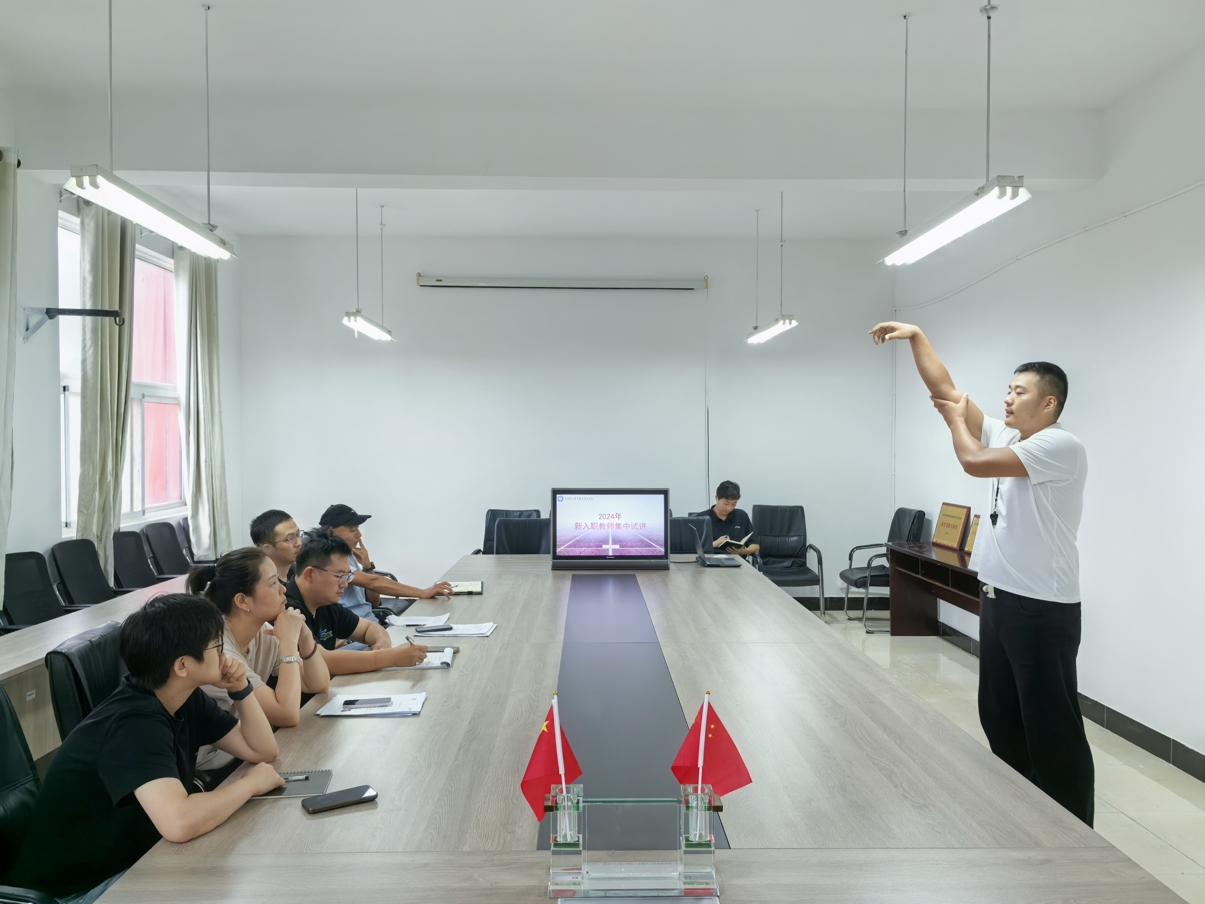 2024年9月10日—14日,体育俱乐部管理中心组织对新入职教师开展了备课指导、公开课示范、集中试讲说课指导等培训工作。其中集中试讲说课环节,新入职教师按一节课的教学时长设计教学全过程、针对1个专项技术动作教学展开了45分钟的展开试讲。教研室主任、部门教学督导、经验教师们纷纷结合自身多年的教学经验,从备课、学情分析、教学内容选择、重难点把握、教学过程组织、学生知识素质能力培养、课程思政、现场实践经验、教态、语言表述、教学互动等各个教学环节对每位教师提出了相应的建议,既肯定了他们在试讲说课中的优点与巧思,也指出下一步需要精进的地方。
