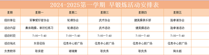 2024-2025第一学期 早锻炼活动安排表