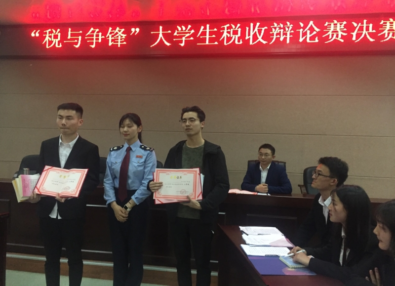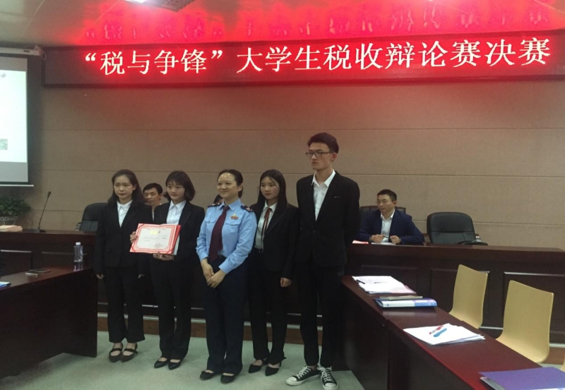 本网讯 2018年4月25日,为提高大学生对税收知识的了解,切实感受税收对人们生活的重要意义,由安徽省国家税务局机关团委举办的“税与争锋”大学生辩论赛在安徽财经大学博雅楼报告厅内举行。我院代表队参加了此次比赛。