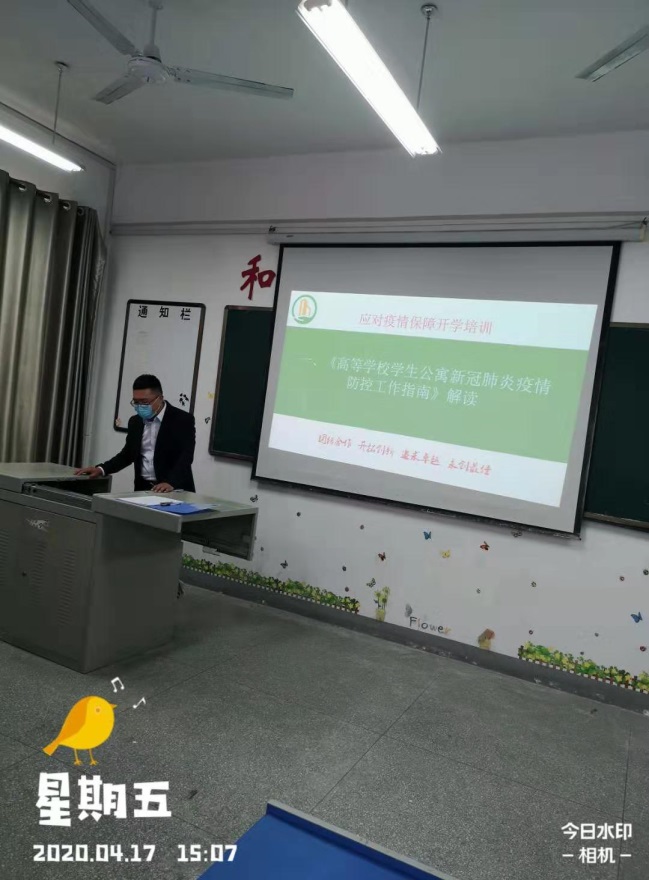 为落实公司和校方相关要求,确保新学期学校新冠疫情防控工作平稳运行,4月17日下午,我服务中心邀请公司蚌埠学院项目经理程接兵,对员工进行 “应对疫情保障开学”专项培训,旨在进一步提高项目员工疫情防控意识和防控知识技能,积极推进学生返校准备工作。