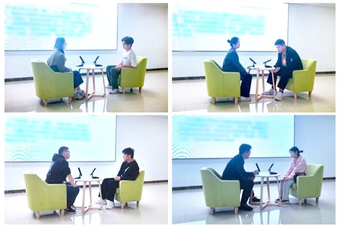谈心谈话比赛环节中,参赛选手根据抽取的情景内容,逐一与学生演员进行模拟谈话,并做自我总结。谈话过程中,参赛辅导员们认真倾听、娓娓道来,积极安抚学生情绪、做好学生思想引领,帮助学生找到问题症结,给出有效解决方案,努力把谈话谈到学生心坎上。