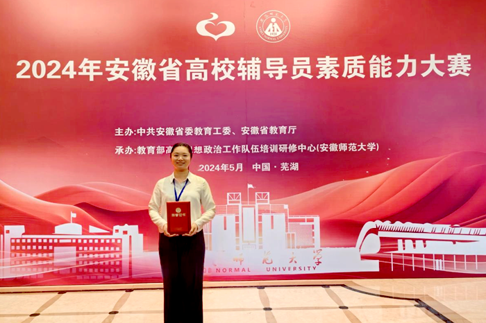 本网讯 5月9日至11日,由省委教育工委主办,教育部高校思想政治工作队伍培训研修中心(安徽师范大学)承办的2024年安徽省高校辅导员素质能力大赛在安徽师范大学举行。学院专职辅导员蔡琦代表学院参加此次大赛,并荣获大赛三等奖。