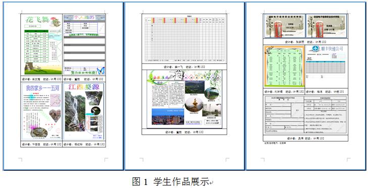 课程教学采用集中时段授课,带学生做项目,即项目式教学。整个课程中使用了20个项目(部分项目作品展示见图1),项目采用的形式也很丰富,有命题项目,也有让学生自由发挥的项目;有个人独立完成的项目,也有小组合作的项目,甚至有全班集体参与的项目;项目的趣味性也增加,把枯燥的计算机硬件做成硬件游戏连接项目,把难以理解的计算机网络概念让学生通过网络资源进行收集整理,然后每组派一名代表进行解释说明等。另外在教学中还进行了汉字录入对抗赛等形式多样的高校课堂教学。这些都充分调动了学生在课堂中的积极性、主动性,拓展了学生的思维,培养了学生的能力。