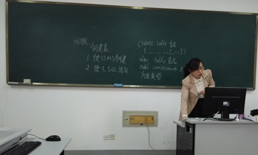 在活动中,王大灵老师以带约束的数据表创建为例,展示了类似于SQL之类的专业基础课程教学组织和开展工作。王老师展示了在本学期45分钟一节课程的新教学环境下,课程回顾、项目导入、任务布置及实训操作等教学环节的组织。在教学环节展示完成后,从课程定位、课程目标、课程设计理念、课程设计思路四个方面进行说课。