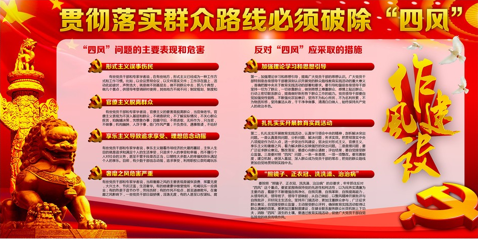 “四风”是党的群众路线的死敌大敌顽敌,其要害是一方面使党脱离群众、丧失密切联系群众的最大政治优势,另一方面使群众同党若即若离乃至离心离德,长此以往,必将从根本上破坏党同人民群众的血肉联系,从根本上摧毁党。