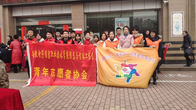 本网讯  3月1日上午,信息与智能工程系作为共建单位,应邀组织20余名志愿者参加蚌埠市建新社区“新时代实践文明站成立暨学习雷锋日宣传活动”