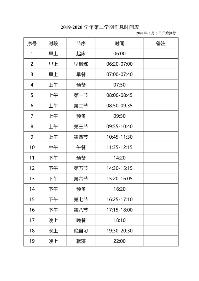 转发《学院2019-2020学年第二学期作息时间表》(2020年5月6日执行)