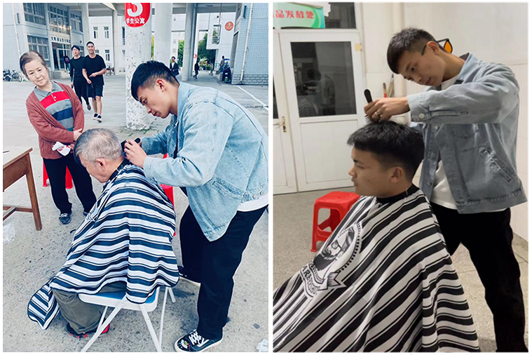 本网讯 受疫情影响,学校当前实行封闭式管理,校内人员不能随意外出,老师、同学头发长了想剪怎么办?在信息工程学院,退役大学生刘超化身“理发师”,右手持剪、左手拿梳,为在校老师、同学理发,解决师生的“头”等大事。