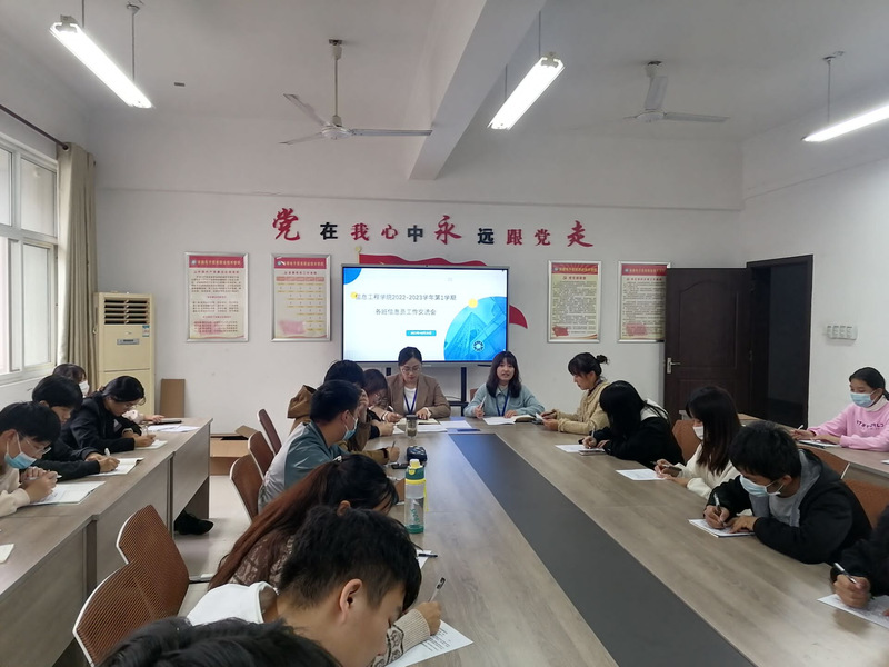 本网讯 为广泛听取学生对学院教学运行、教学管理、课堂教学、班风学风建设等方面工作的意见和建议,实时掌握教师的教学和学生的学习情况,不断发现和解决教学过程中存在的不足和问题,进一步完善基层教学组织活动,推进教学诊改工作往深里走、往实里走,促使教学质量不断提升,10月26日中午,信息工程学院在信息中心南306会议室召开学期第一次学生教学信息员座谈会。副院长胡北辰,学院教学督导组成员赵露、杨旭和蔡瑞瑞老师,以及43个班级学生教学信息员参加座谈会,座谈会由胡北辰主持。