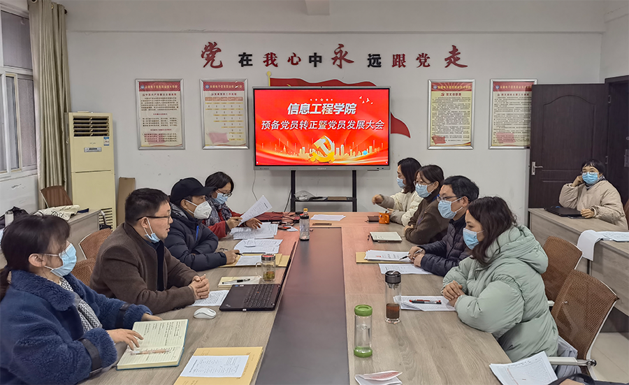 本网讯 为进一步激励青年学生践行初心、担当使命,夯实组织育人工作, 12月9日下午,信息工程学院召开2022年下半年预备党员转正暨党员发展大会,由教师党支部和学生党支部在信息中心南306室和南307室分别组织召开,各支部正式党员、预备党员、发展对象等参加会议。会议由教师支部书记毕好昌和学生支部书记王大灵老师分别主持。