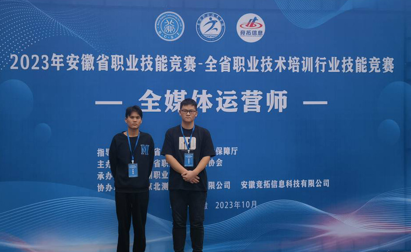 本网讯 10月27日至28日,2023年安徽省职业技能竞赛——全省职业技术培训行业技能竞赛“全媒体运营师”赛项在安徽芜湖举行。经过激烈的角逐,我院计算机应用技术专业学生李文凭借过硬的专业技能和稳定的发挥,在众多参赛选手中脱颖而出,以第1名的成绩荣获了学生组一等奖,并将代表安徽省参加全国总决赛的角逐,指导教师程淑玉获得“优秀指导教师”荣誉称号。