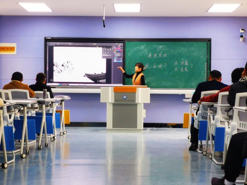 本网讯 为更好地促进教师间教学经验交流,提高教师课堂教学质量,提升教师教学业务能力水平,11月15日下午,信息工程学院在南302智慧教室开展了学期第一次教学公开示范课活动。本次公开课由胡北辰老师主讲“平面设计”课程。全体教师参加,活动由周丰杰老师主持。