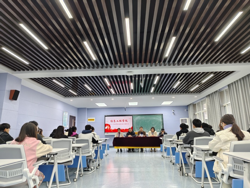 本网讯  为切实做好青年大学生的培养和发展工作,进一步端正入党动机,坚定理想信念,12月6日下午,信息工程学院在信息中心南302室举行2023年秋季学期业余党校开班典礼。党总支书记、院长朱正月,副书记张曌,党总支委员、教师第一支部书记毕好昌,党总支委员、学生支部书记王大灵,教师第二支部书记王锦,以及28名青年大学生学员参加,开班典礼由王大灵主持。