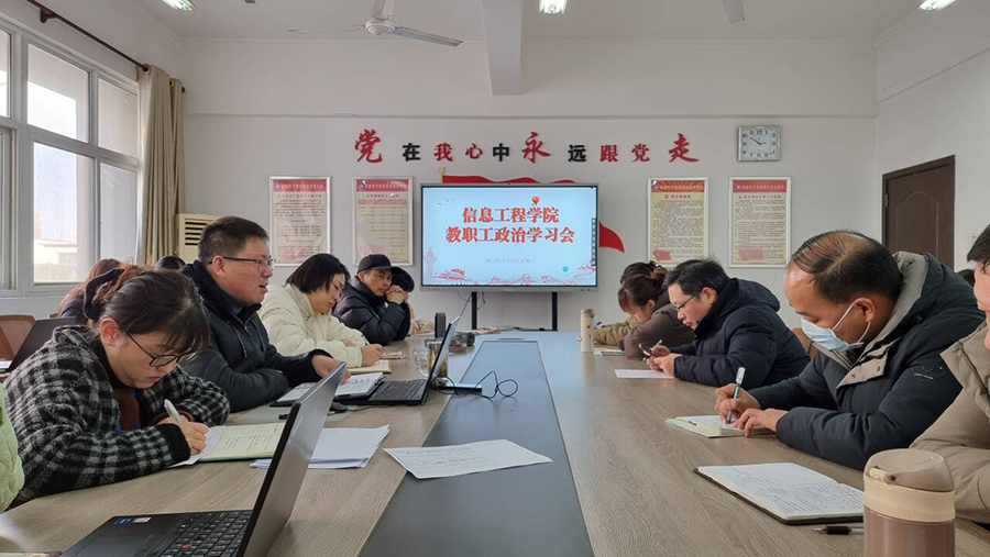 本网讯 为深入学习贯彻习近平新时代中国特色社会主义思想和党的二十大精神,进一步筑牢教职工的思想根基,12月20日下午,信息工程学院在信息中心南306会议室召开12月教职工政治理论学习会,全体教职工参会。学习会由党总支书记、院长朱正月主持。